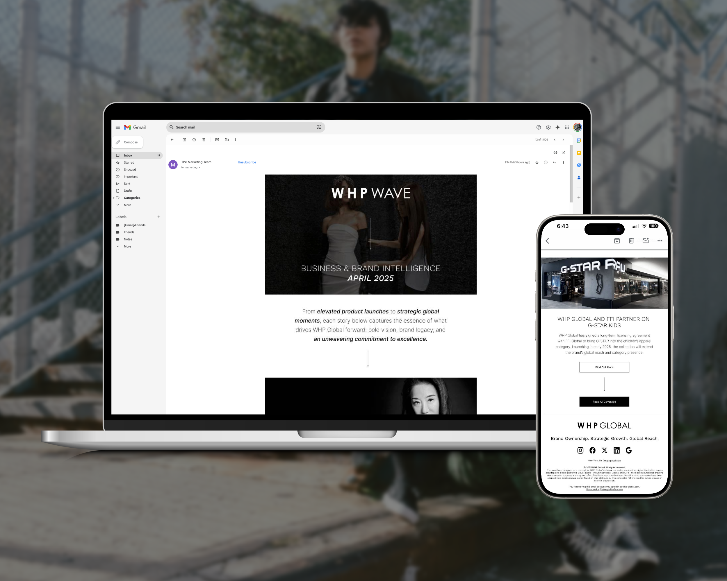 A conceptual digital newsletter created for WHP Global to showcase how the brand’s updates and industry news could be presented in an engaging, mobile-optimized format.